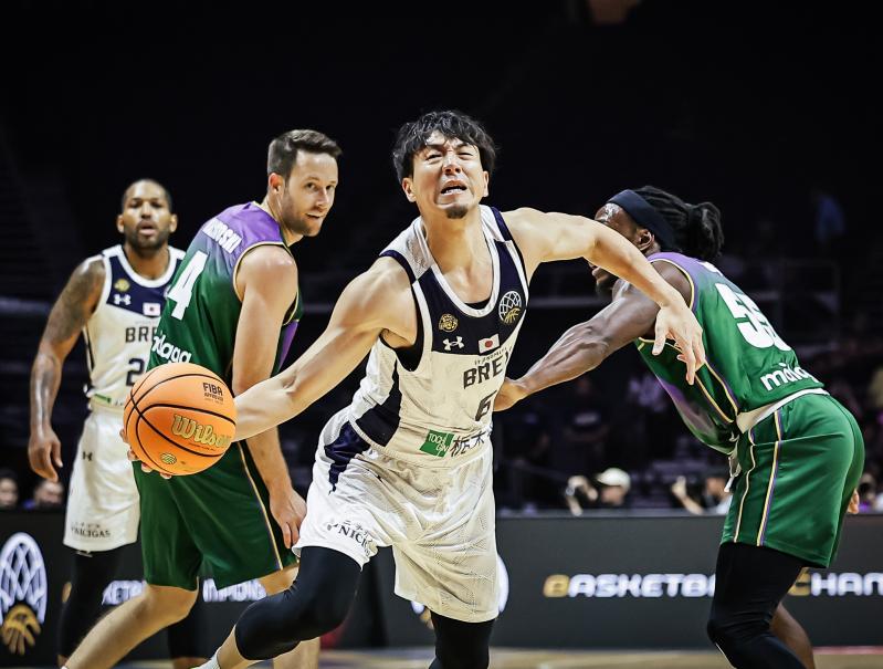 5位決定戦 ゴールにアタックするブレックスの鵤=シンガポールインドアスタジアム(FIBA提供)