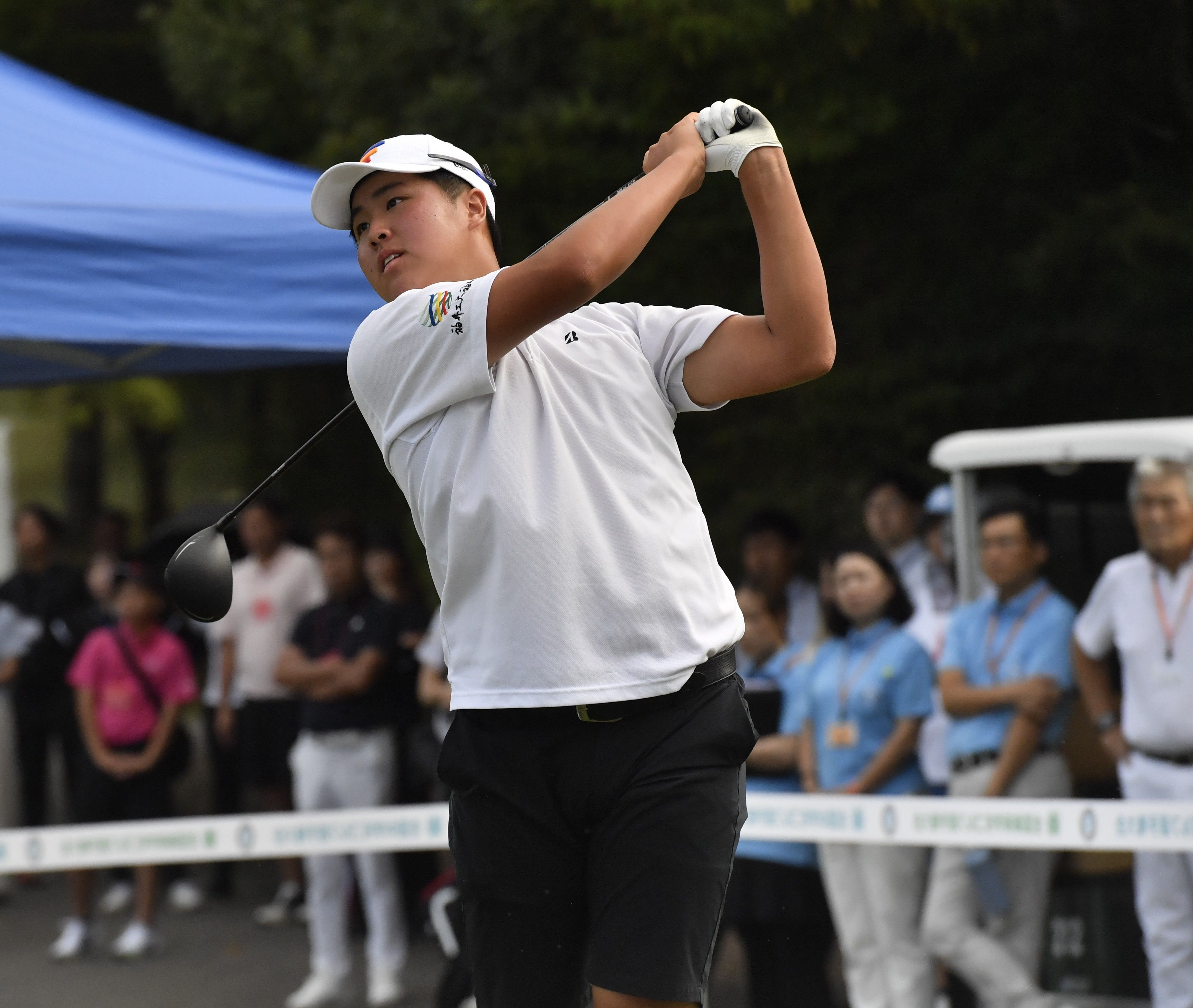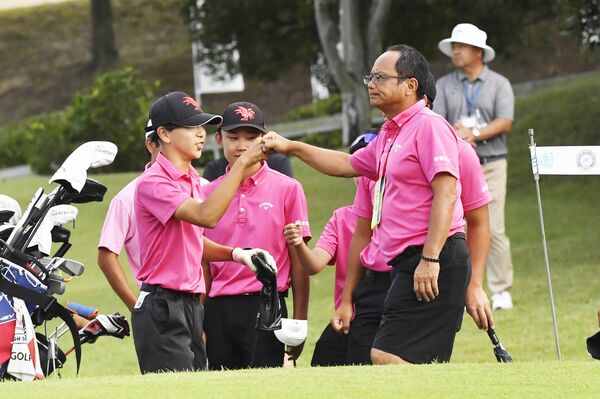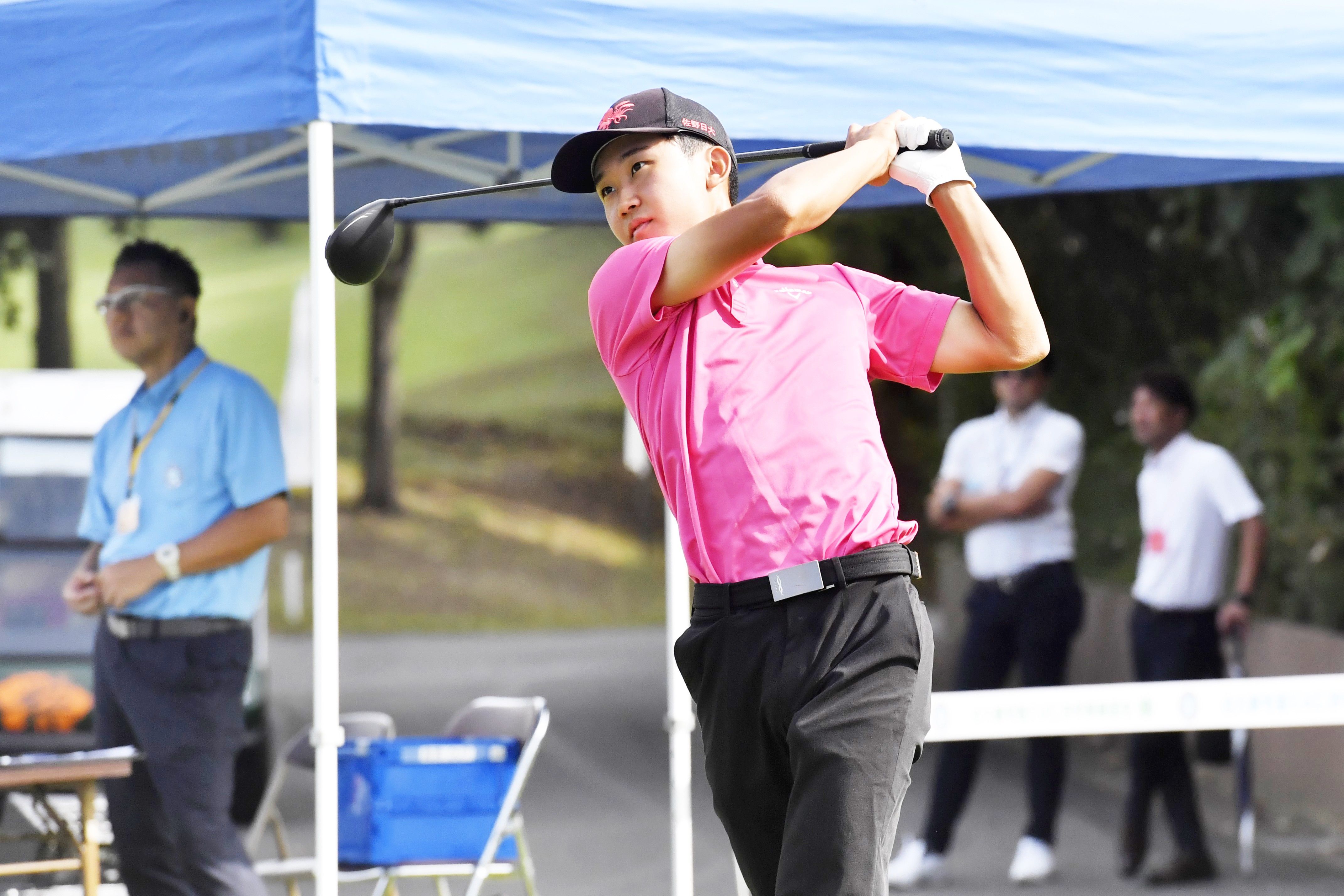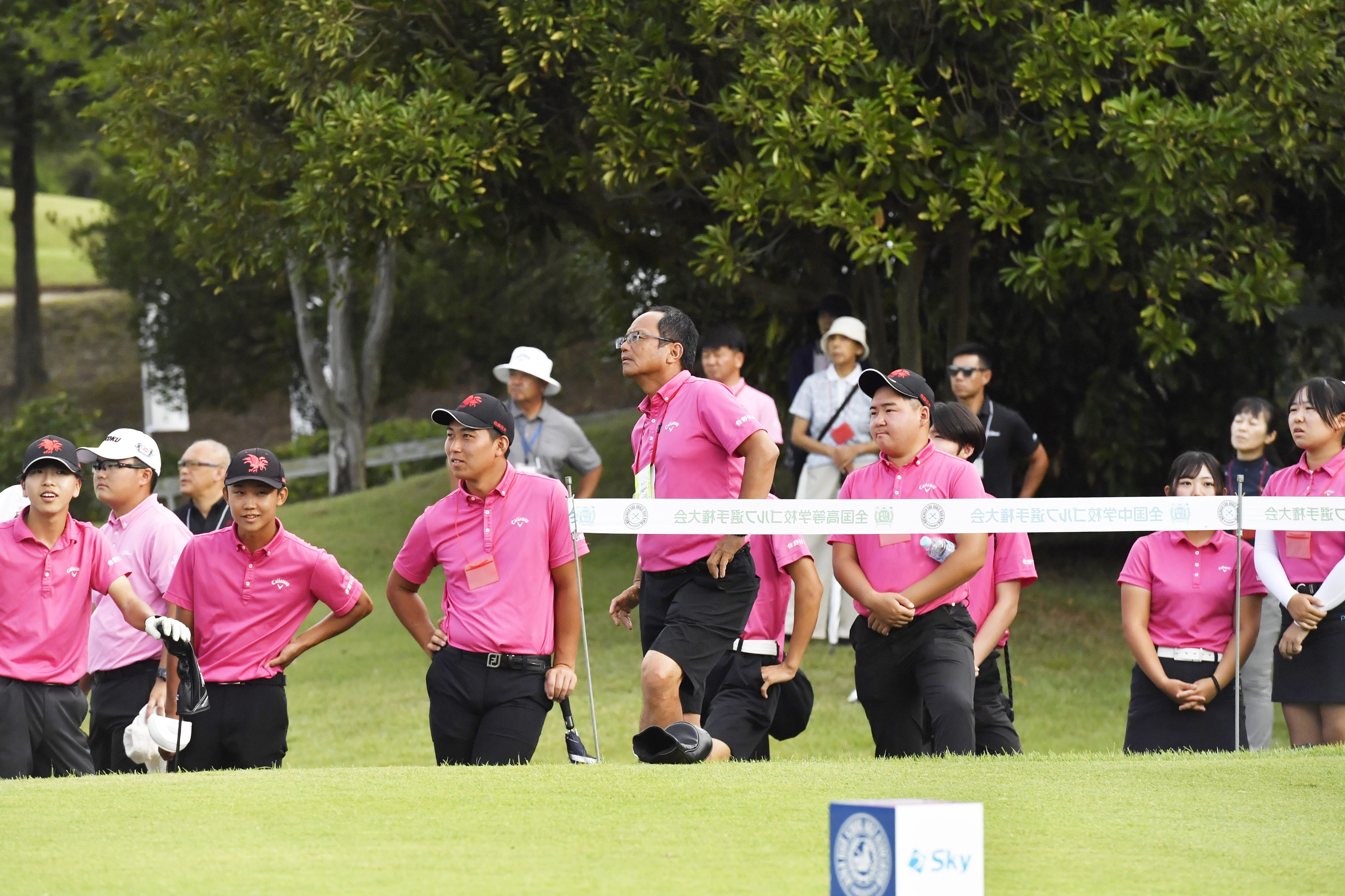 代表選手のボールを追う佐野日大ゴルフ部員