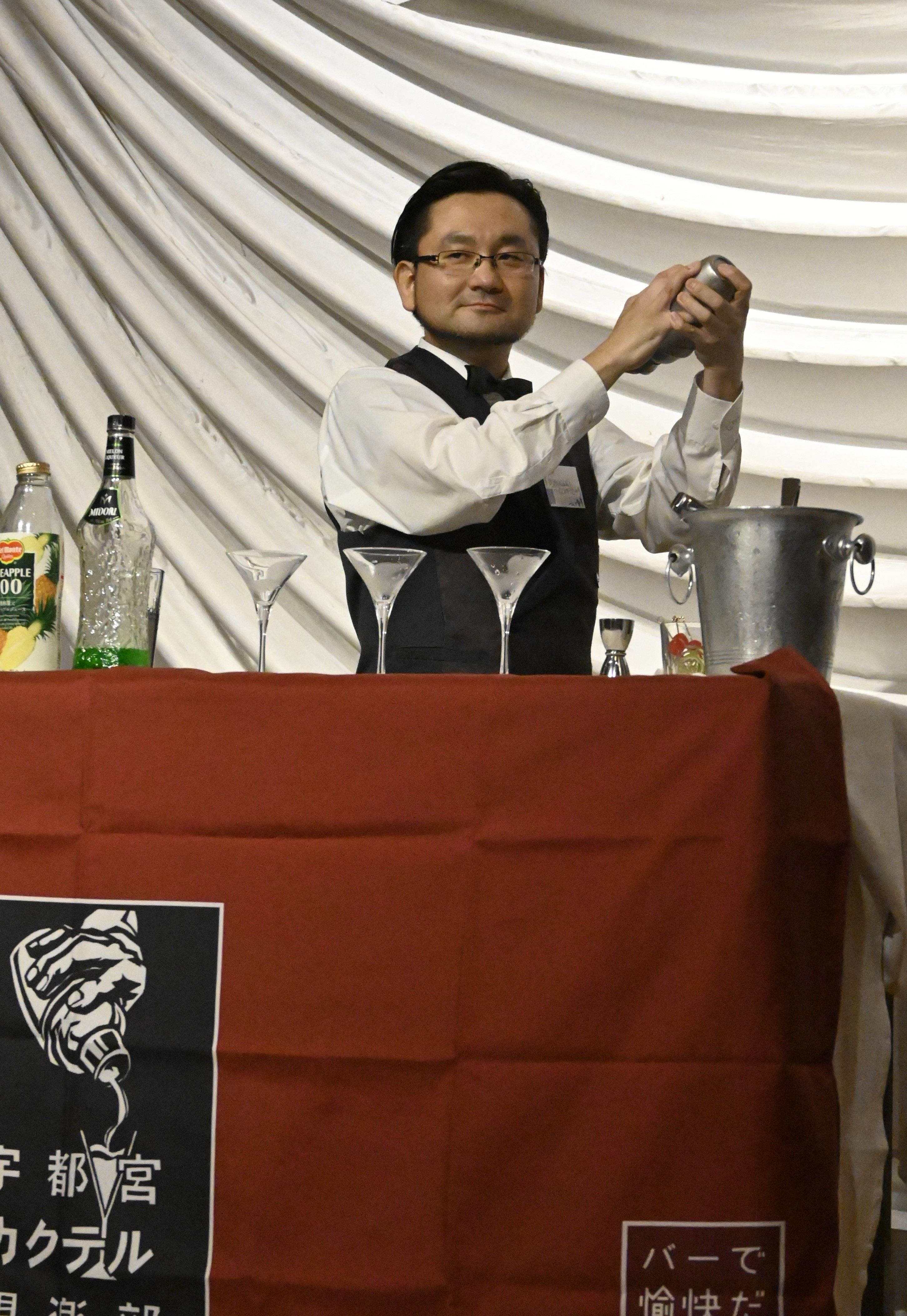 「U.C.Cカクテルチャレンジ2025」で実演パフォーマンスするバーテンダー