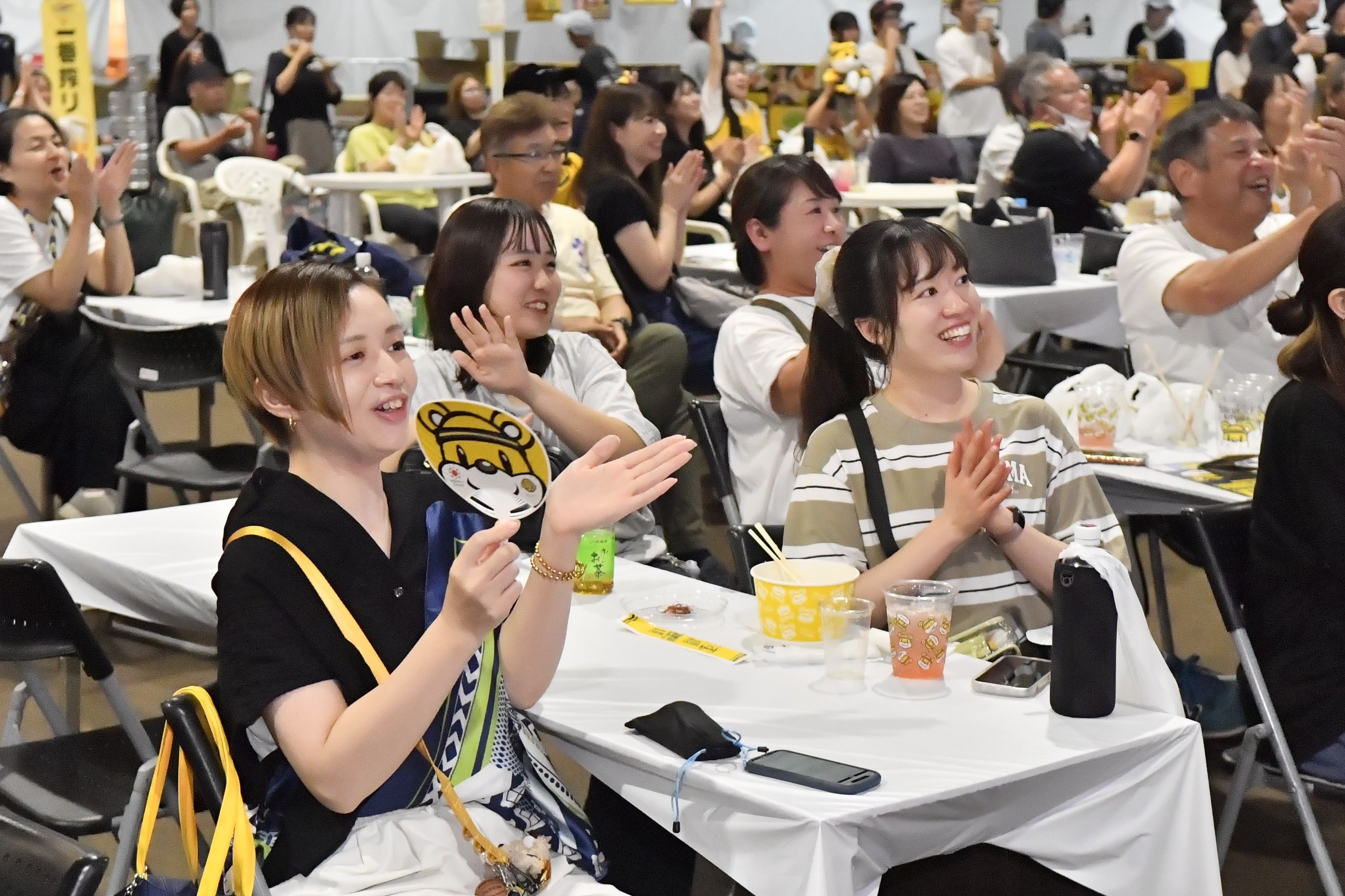 ブレックスの得点シーンで盛り上がる来場者=18日午後7時40分、宇都宮市江野町