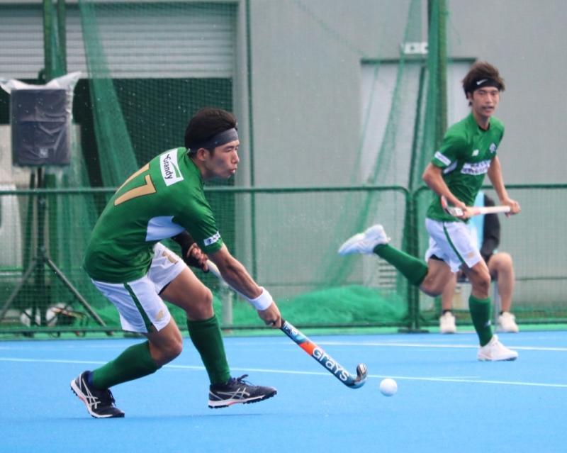 左サイドへパスを送るリーベのFW大岡=OSPスタジアム