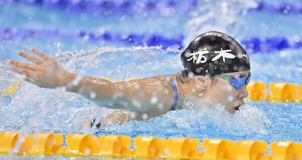 競泳少年女子A200メートルバタフライ決勝 2位に入った後藤(佐野日大高)=磯真奈美撮影