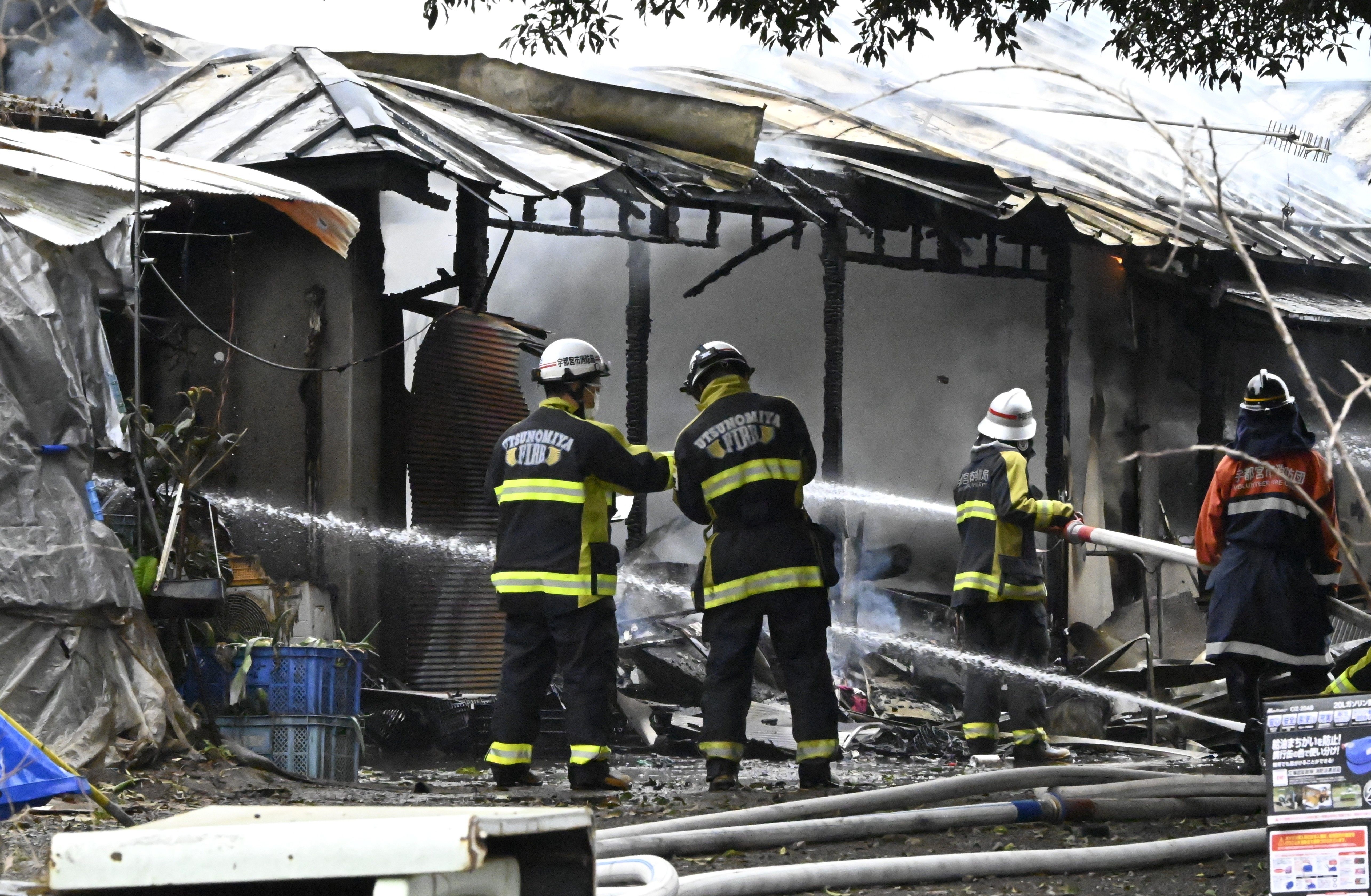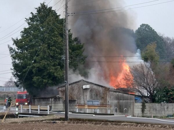宇都宮市新里町で発生した建物火災=30日午前、宇都宮市新里町乙