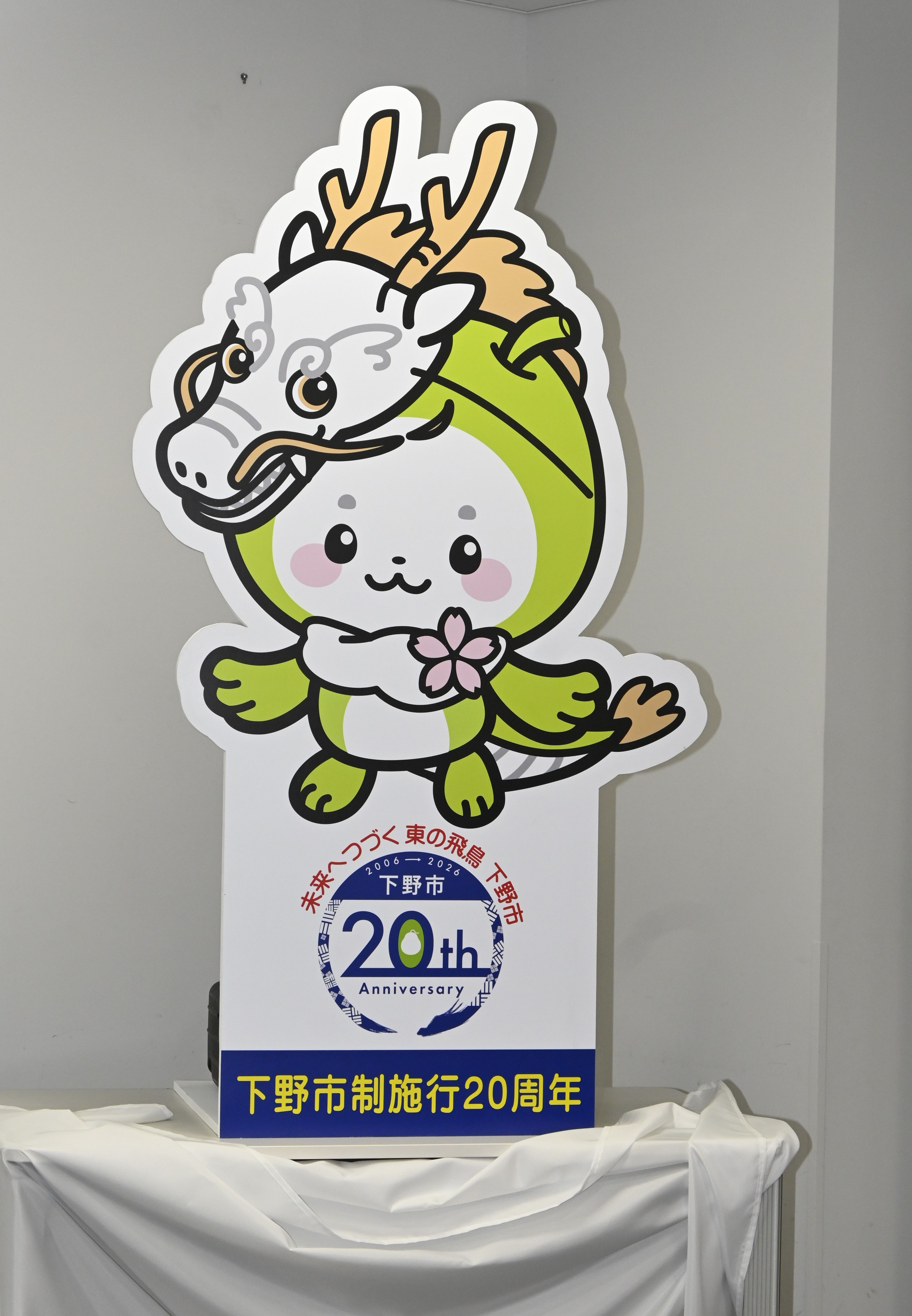 お披露目された市制施行20周年記念シンボルのキャラクター、ロゴなど