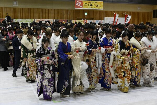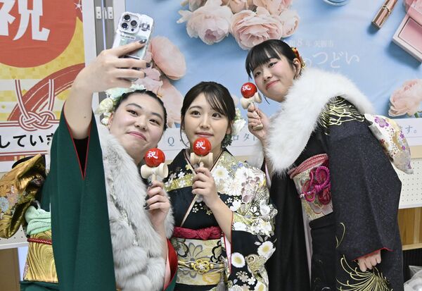 けん玉に挑戦する若者たち=矢板市