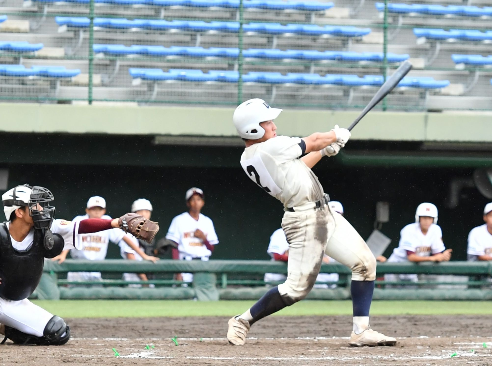 5回、宇都宮の広澤が2点適時打を放つ=エイジェックスタジアム