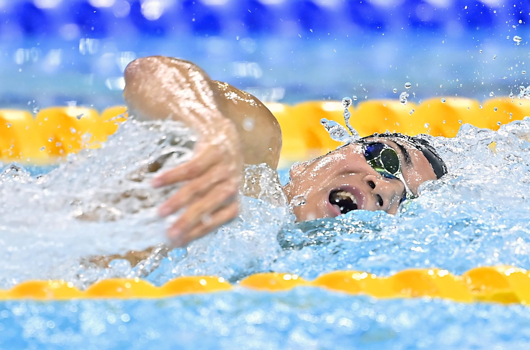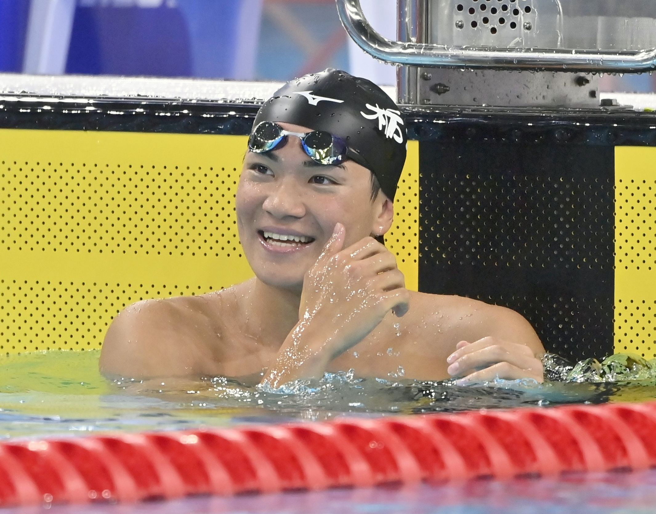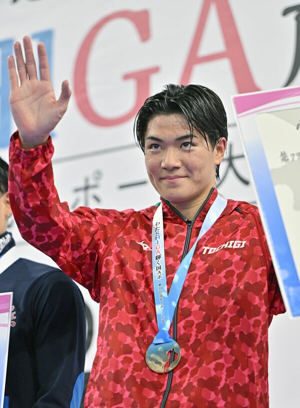 競泳成年男子400メートル自由形決勝 3位に入った松下(東洋大)=滋賀県のインフロニア草津アクアティクスセンター、磯真奈美撮影