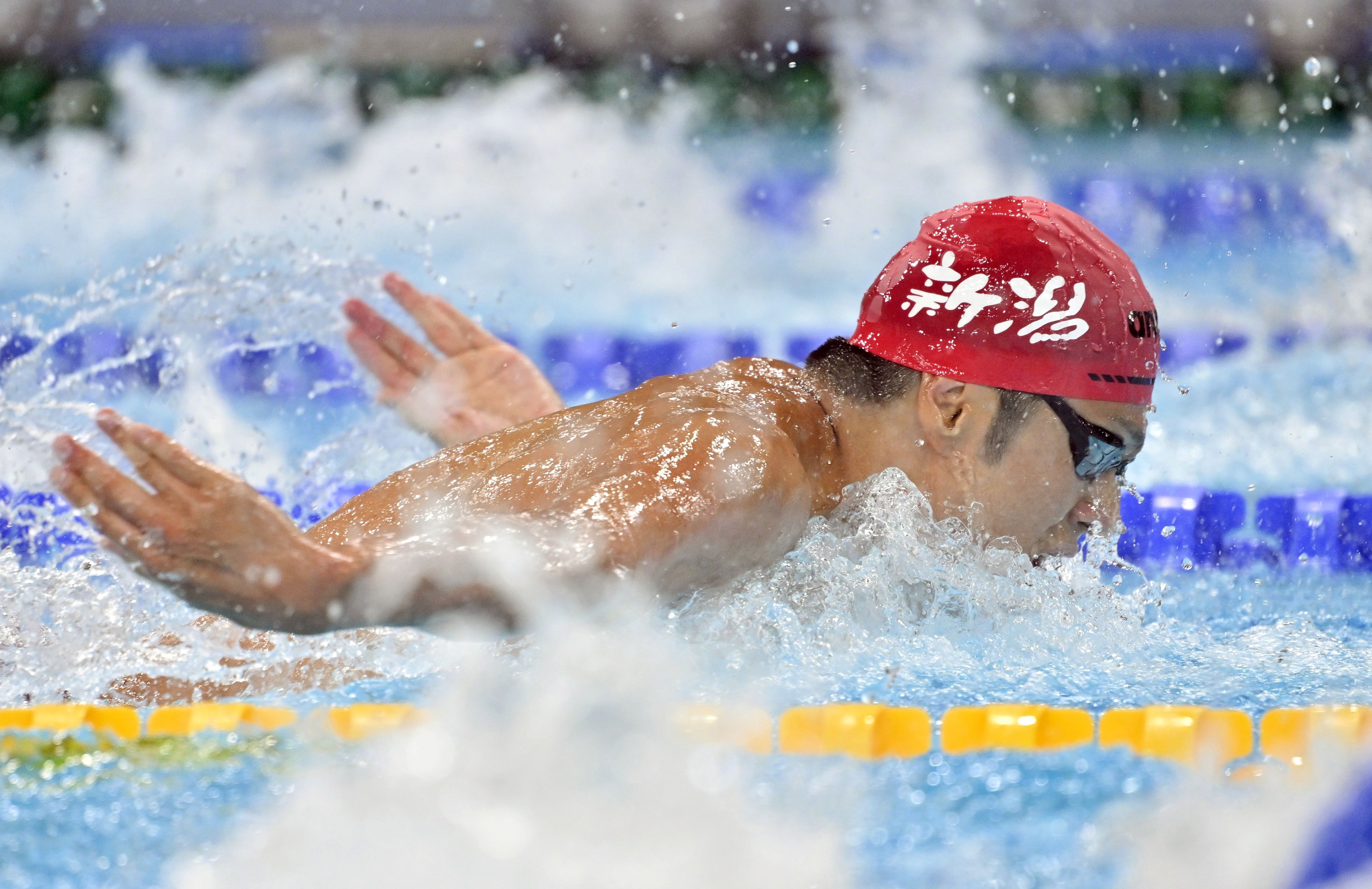 競泳成年男子100メートルバタフライ決勝 3位に入った水沼(新潟医療福祉大職)=滋賀県のインフロニア草津アクアティクスセンター、磯真奈美撮影