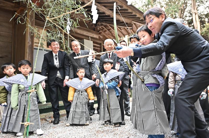 豊作などを祈願した日の出祭りの弓取り式