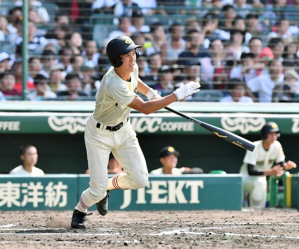 高校時の添田。写真は2013年夏の県大会決勝で同点打を放ったシーン