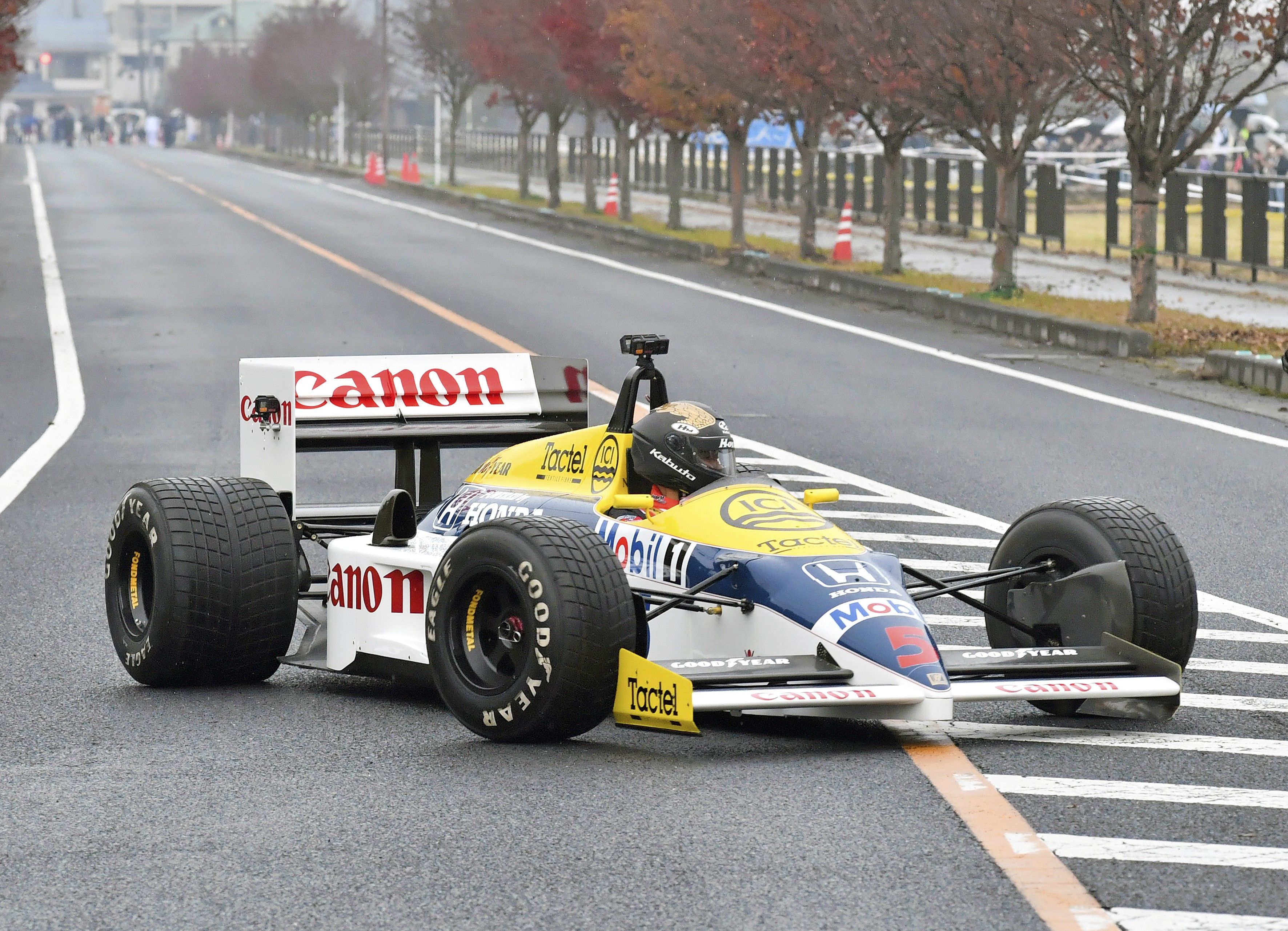 県内で初めて公道を走るF1カー=9日午後、芳賀町祖母井