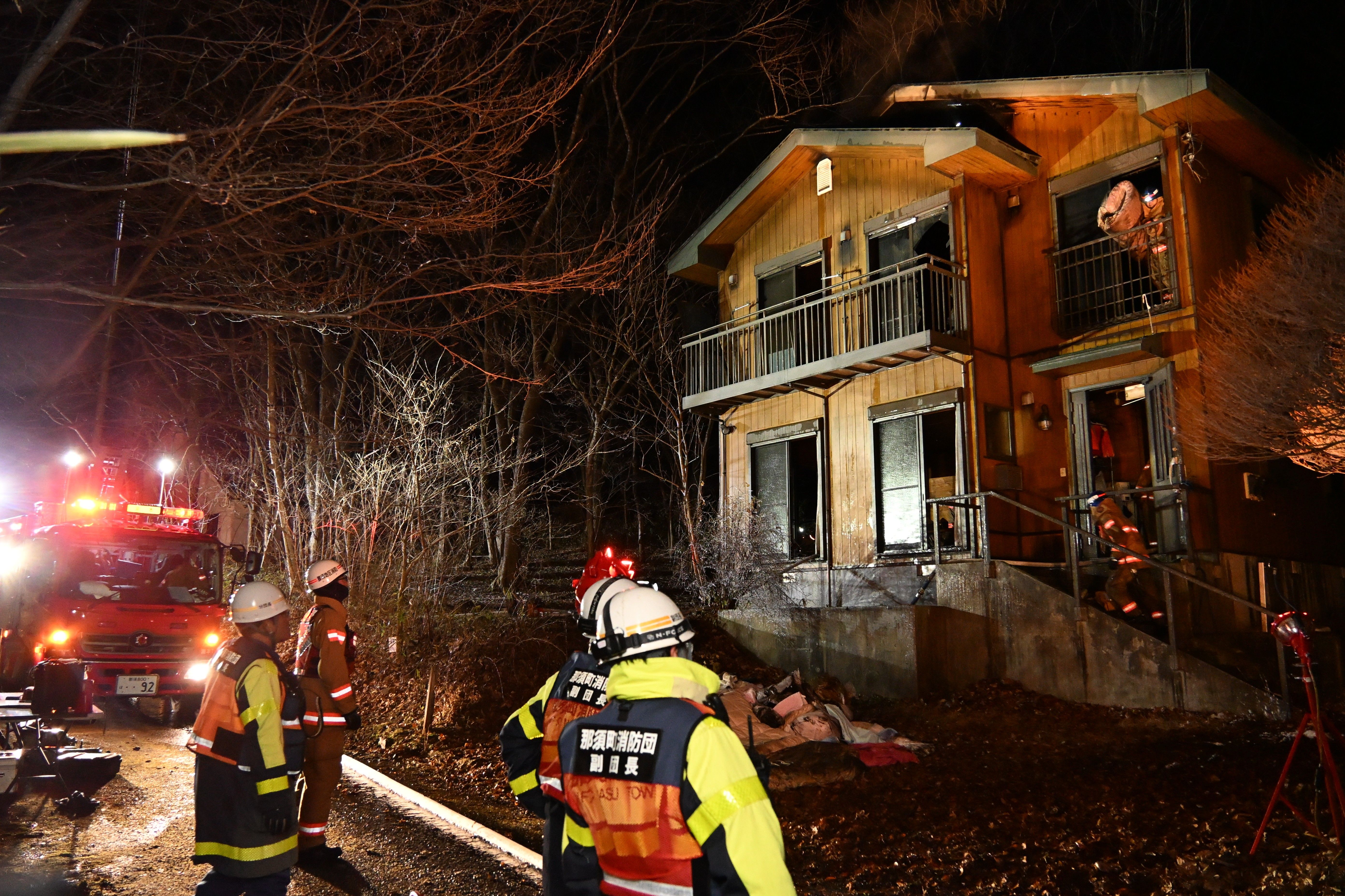 別荘を焼いた火災現場=3日午前5時30分、那須町大島