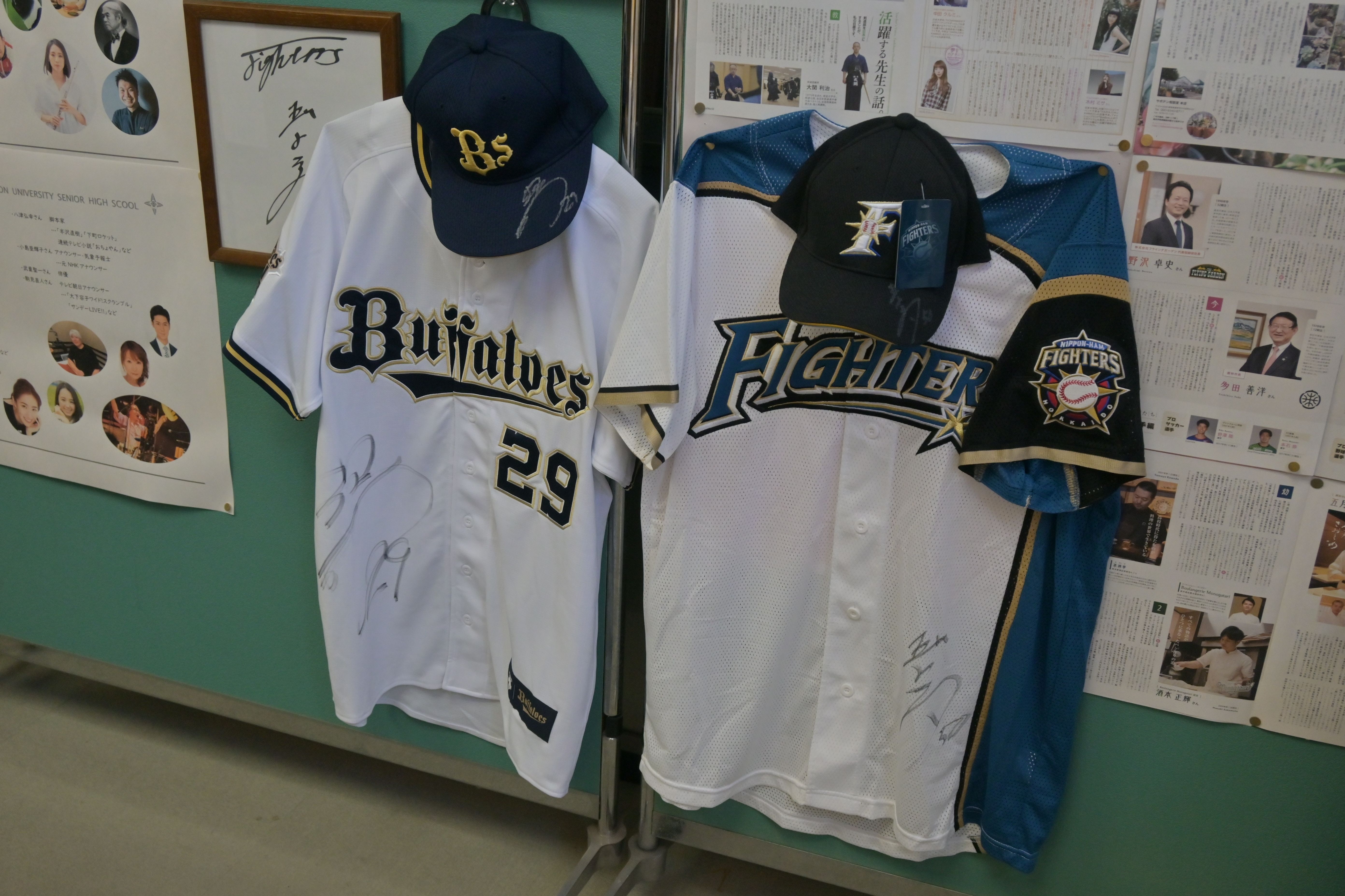 高校の歩みを振り返るコーナーには、プロ野球で活躍する卒業生の田嶋大樹選手(オリックス)と五十幡亮汰選手(日本ハム)のユニフォームも展示されている