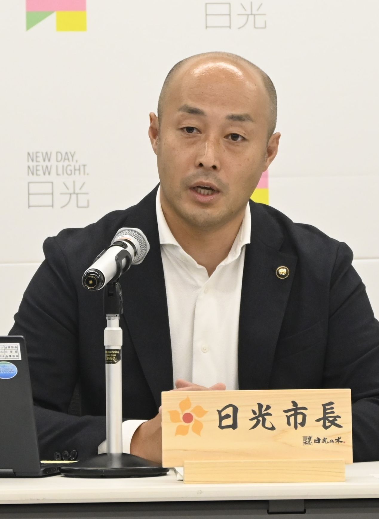 自民党が大敗した参院選への所感を述べる瀬高市長=25日午後、日光市役所