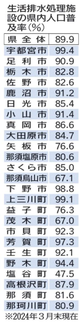 栃木県内の下水処理普及率、0.6ポイント上昇で89.9% 全国平均下回る、合併浄化槽への転換課題に