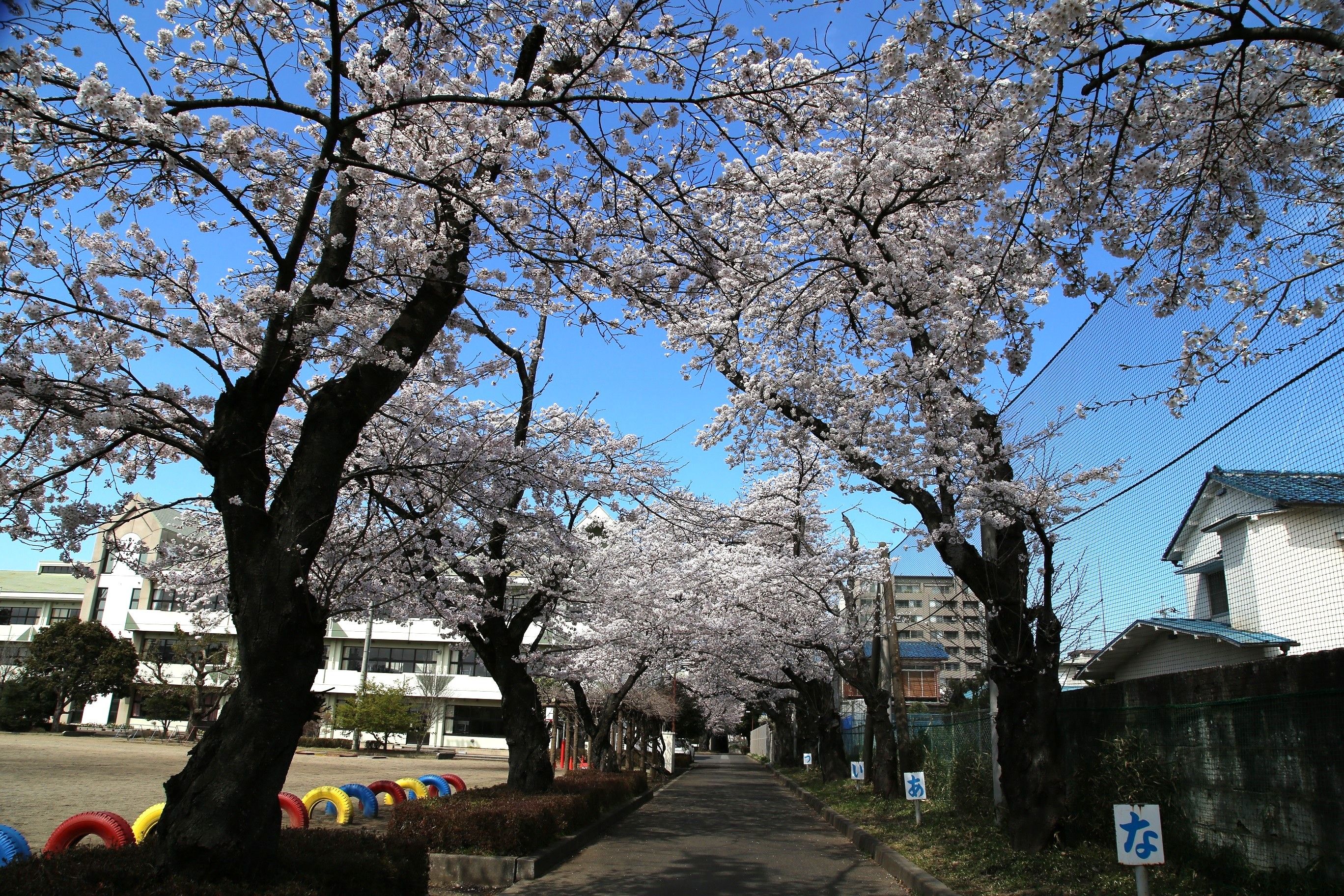 春に咲き誇った陽東小の桜(陽東地区まちづくり協議会広報の加藤弘さん提供)