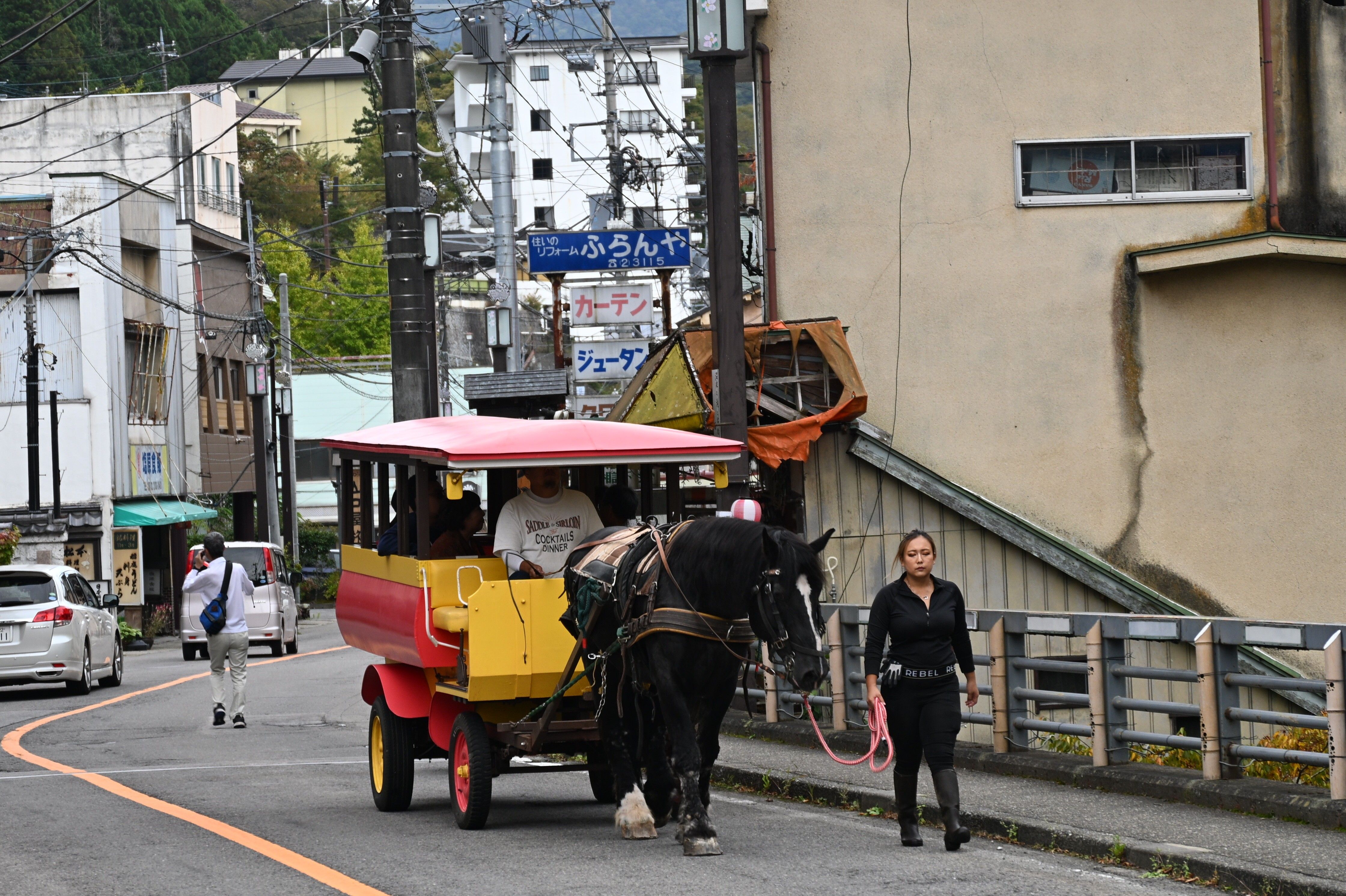 塩原温泉街を運行するトテ馬車