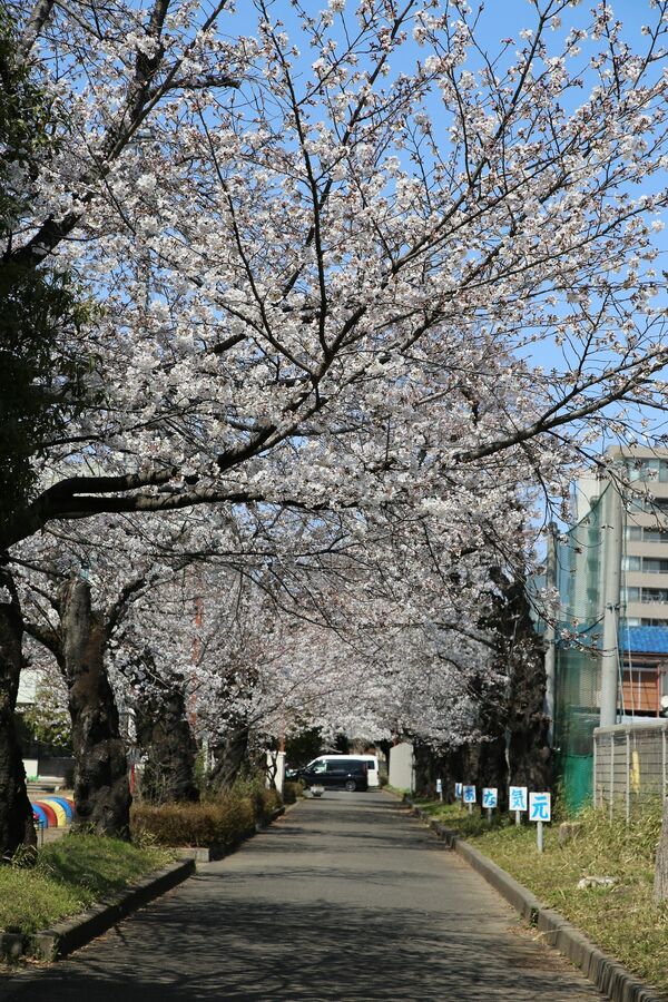 今年春に咲いた陽東小の桜(陽東地区まちづくり協議会広報の加藤弘さん提供)