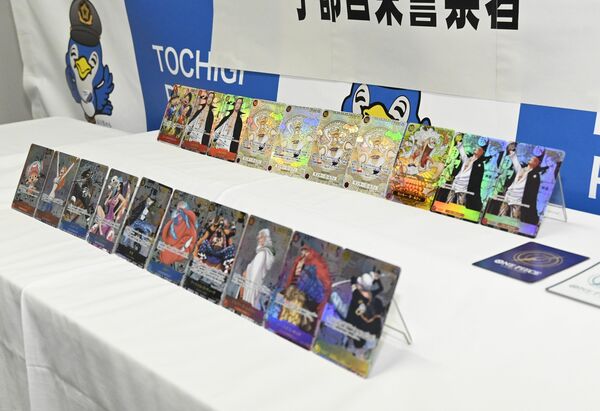 容疑者の自宅などから押収されたトレカ=17日午後、宇都宮東署