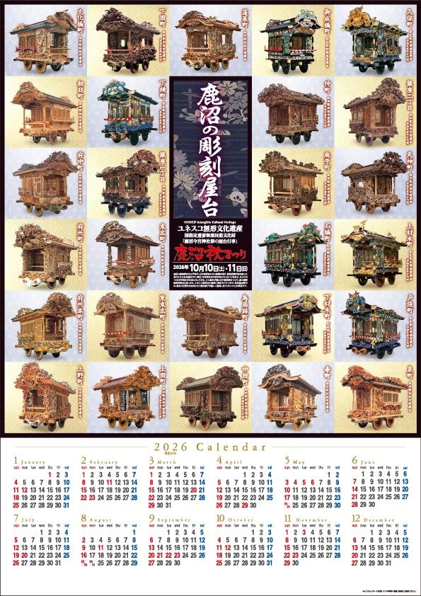 全27町の彫刻屋台をデザインした2026年カレンダー