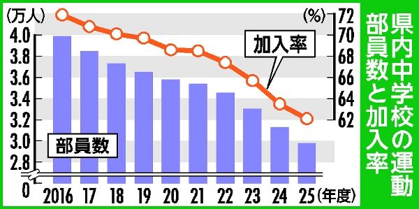 栃木県内中学生の運動部加入率、62%で過去最低 部員最多は男女とも同じ競技 高校生加入率は過去最高