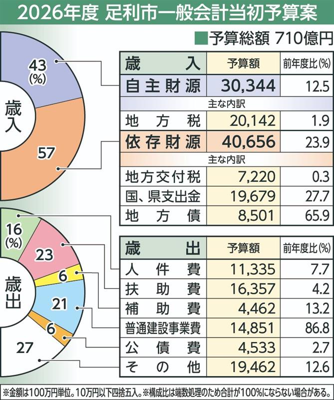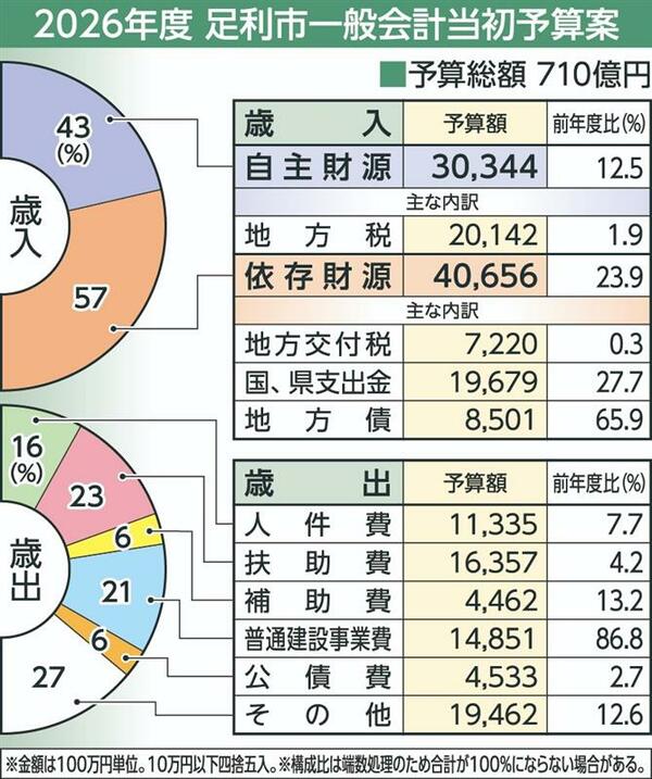 足利市の2026年度当初予算案、2年連続過去最大の710億円 新クリーンセンター建設費増など影響