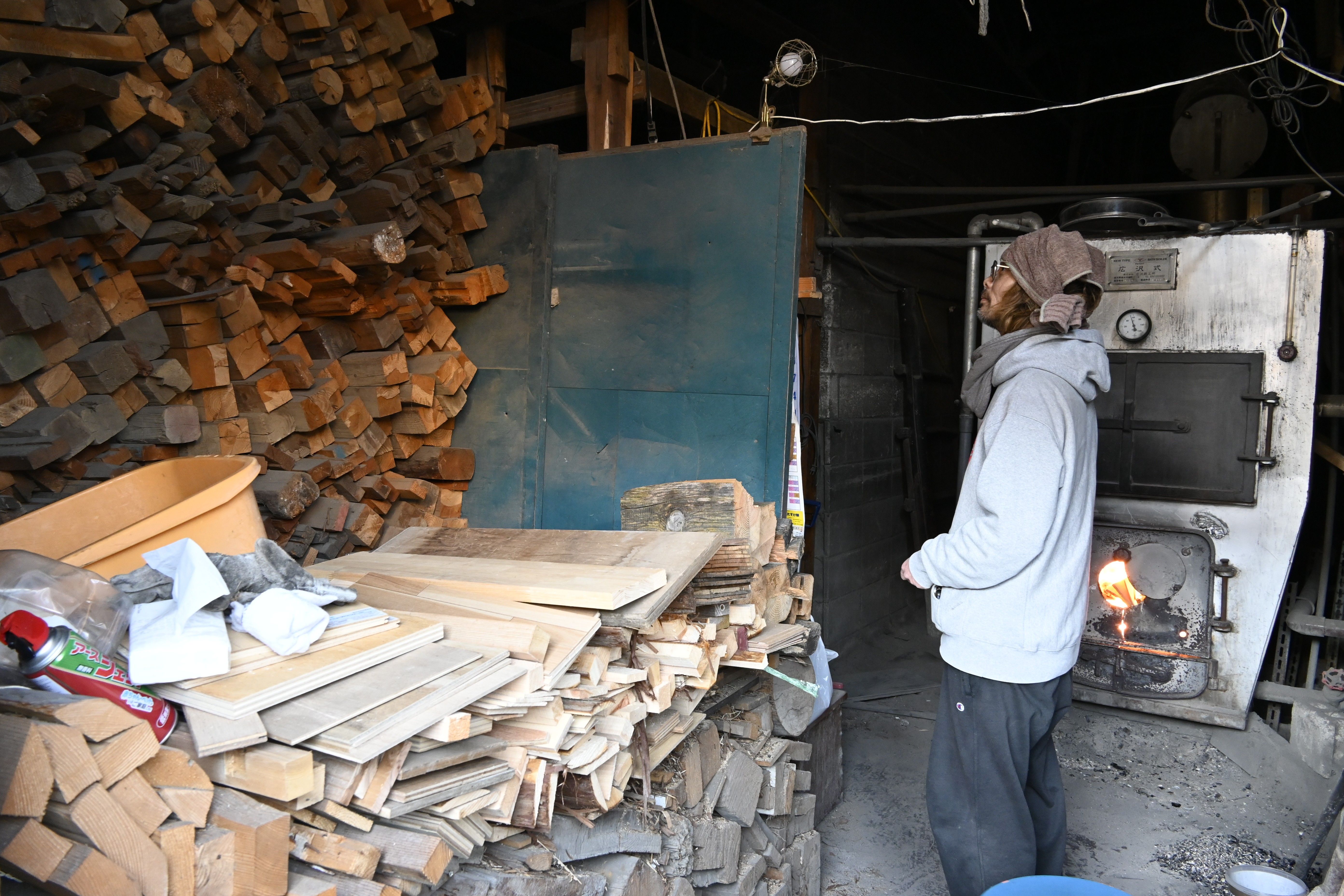 まきで沸かした湯が自慢の玉川の湯=2025年12月、栃木市室町