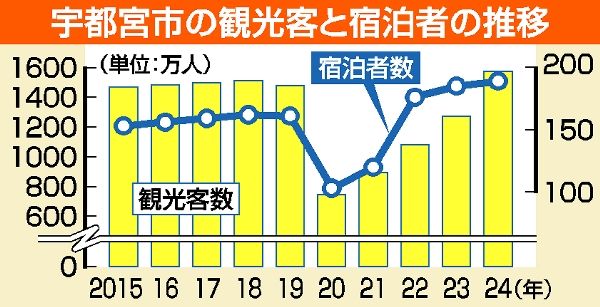 宇都宮・観光入り込み客、過去最多1574万人 24年、コロナ禍前水準に ギョーザ効果など要因