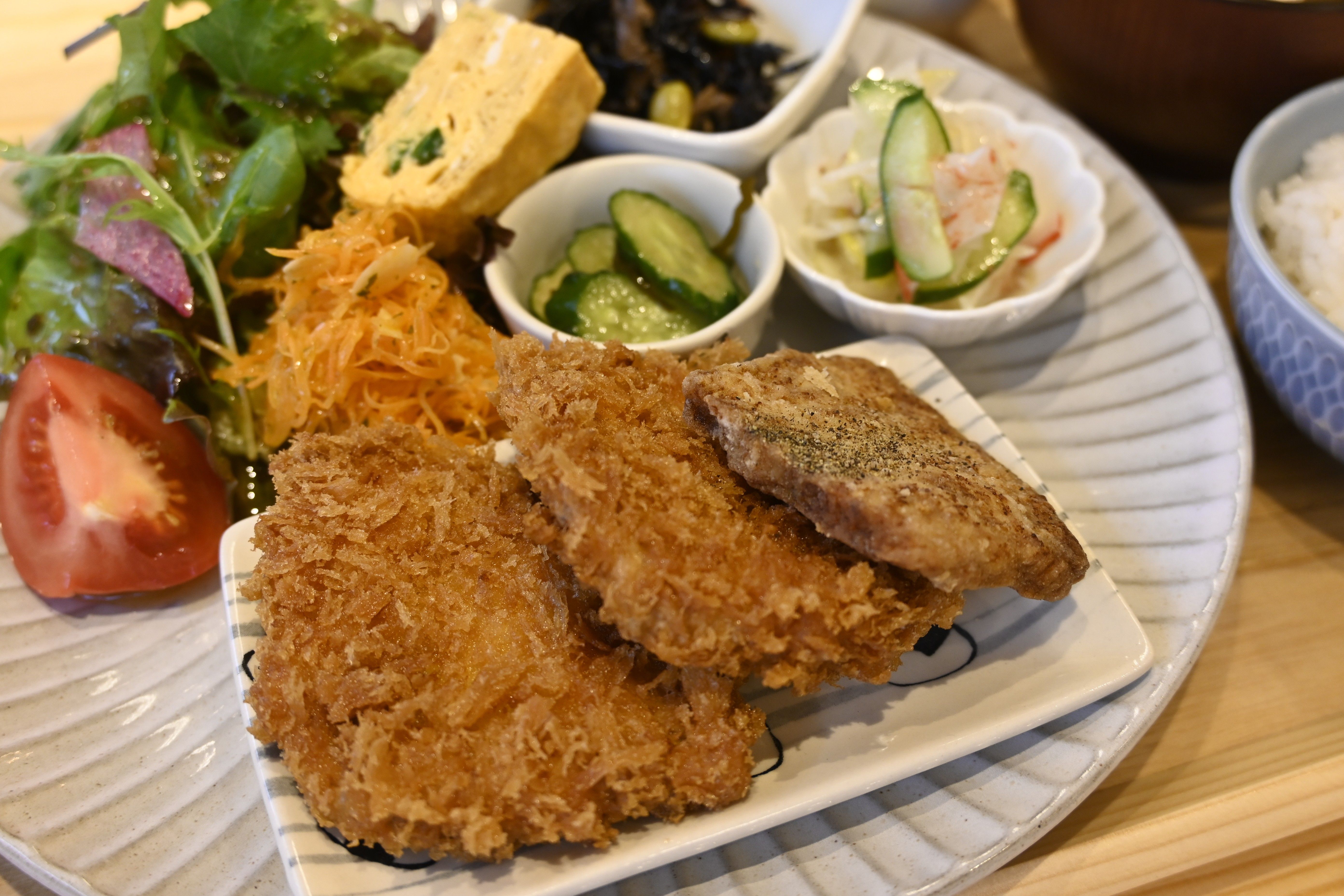 「ごはん&カフェ だいまる」の「さめのフライとさめ唐揚げ」=10日午後、真岡市西田井