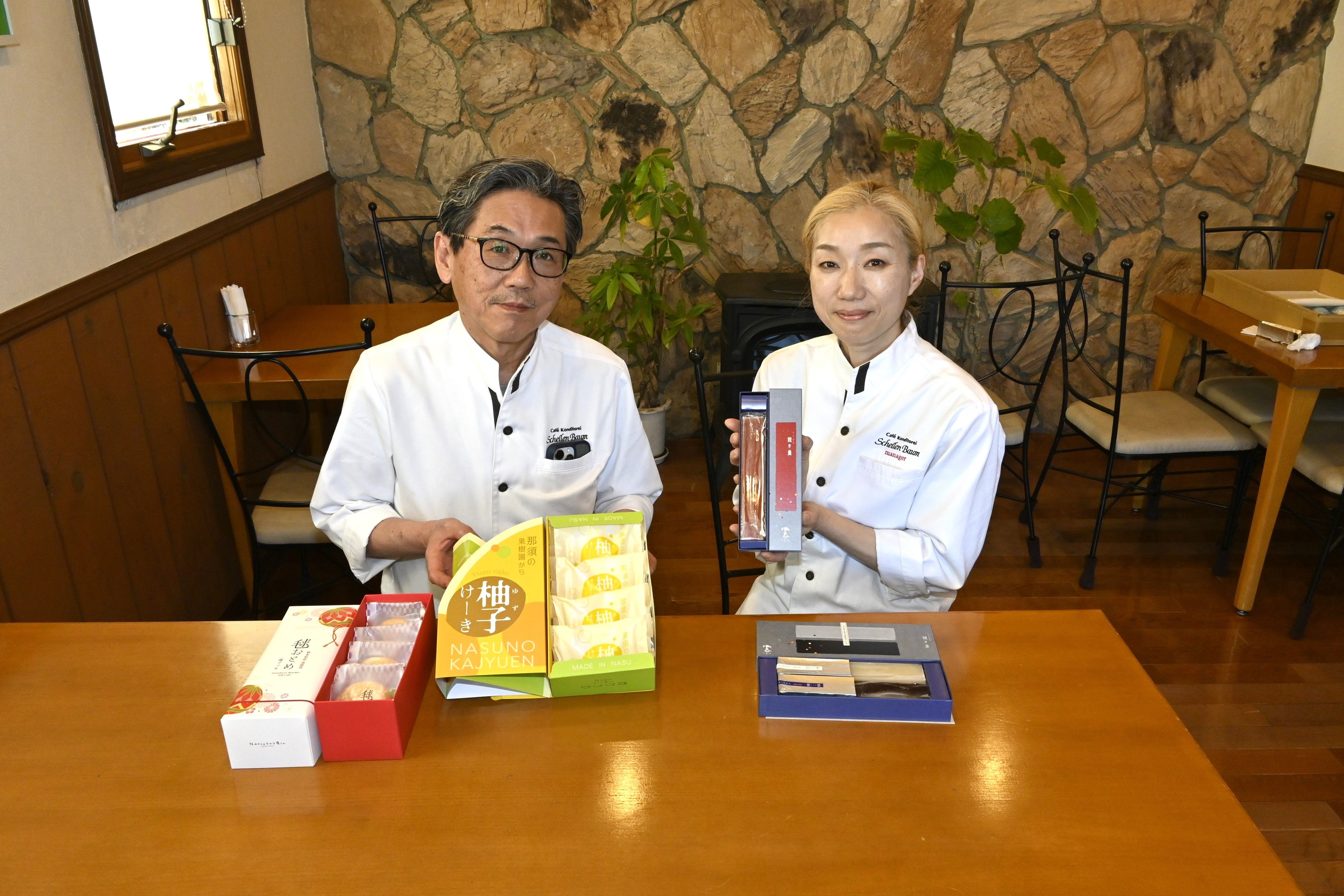 受賞商品を手にする鈴木社長(左)と佐藤本部長