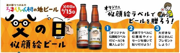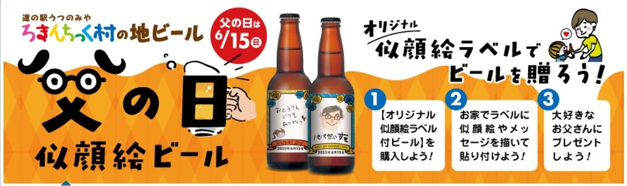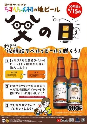 道の駅うつのみやろまんちっく村の「父の日似顔絵ビール」のPR媒体