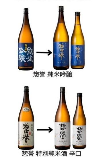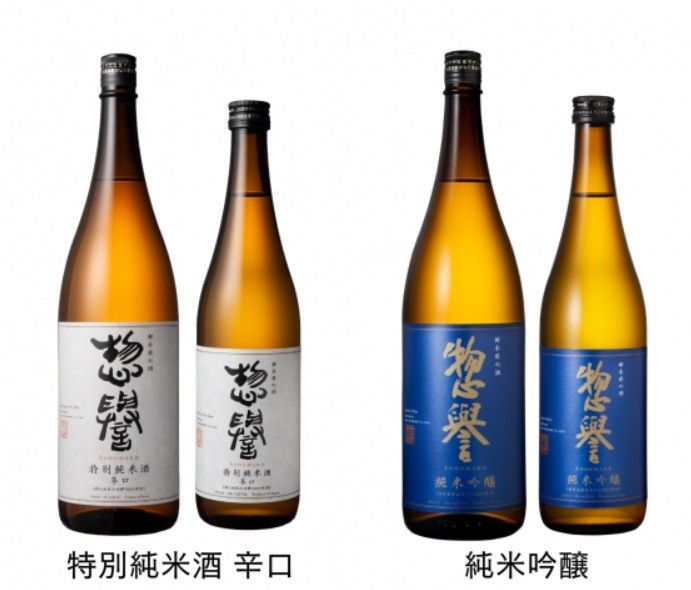 ラベルをリニューアルした「惣誉 特別純米酒 辛口」「惣誉 純米吟醸」