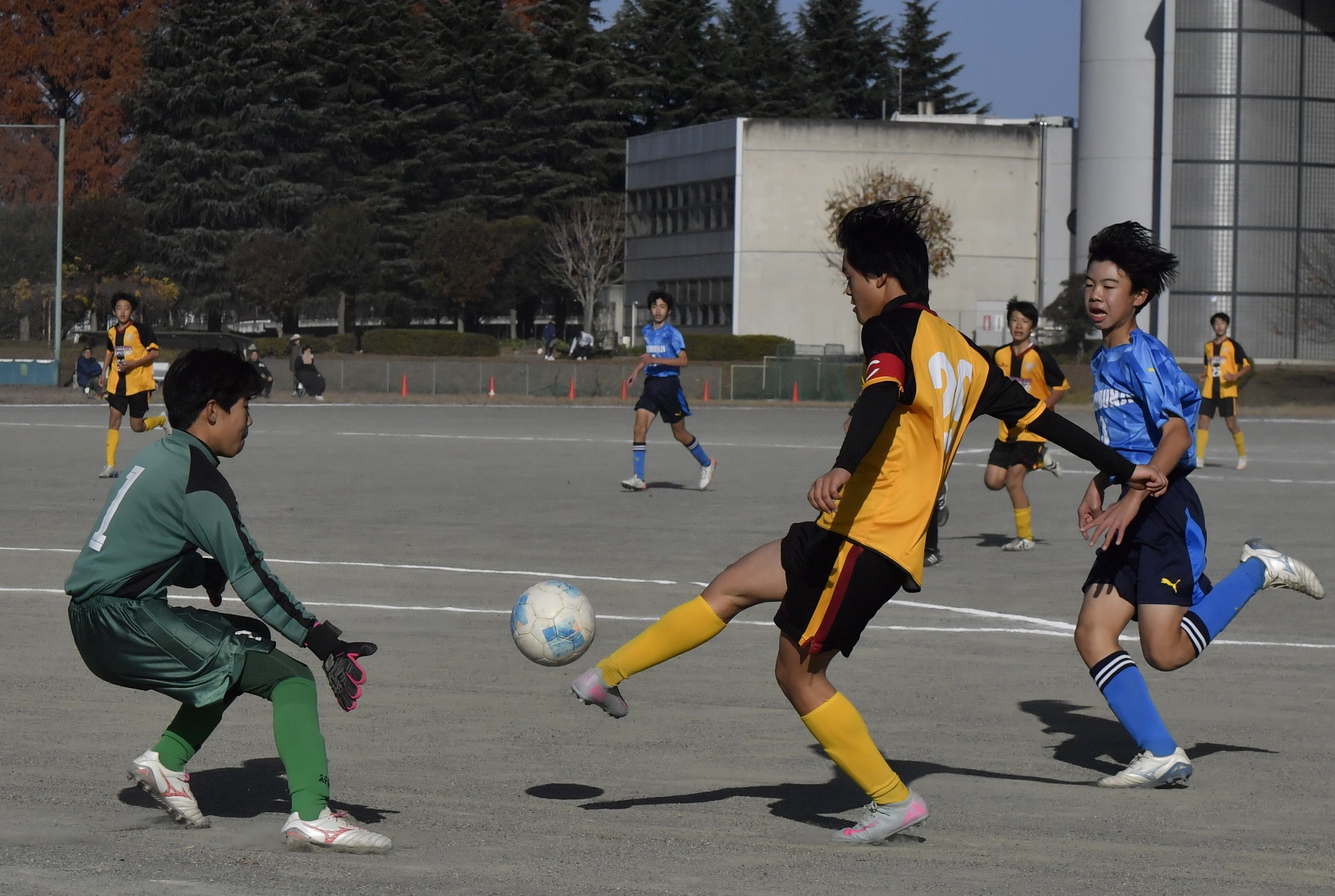 前半6分、コハルプラウド栃木FCの天野(中央)が先制ゴールを決める=石橋中、井上孝男撮影
