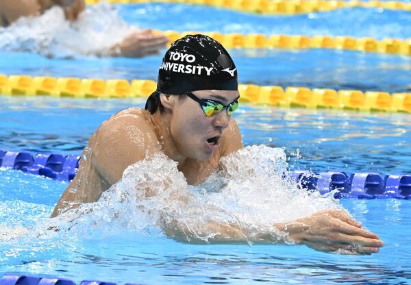 男子200メートル個人メドレー決勝 松下(東洋大)が平泳ぎで後続を突き放す=東京アクアティクスセンター、加藤竜矢撮影