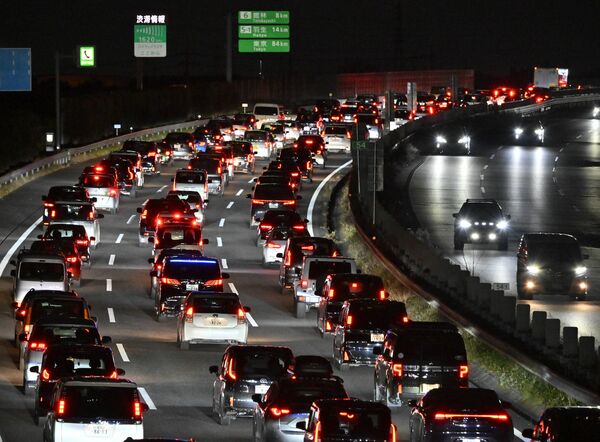 帰省先などからのUターンラッシュで渋滞する東北自動車道上り線=2025年1月3日午後5時15分、栃木市藤岡町都賀