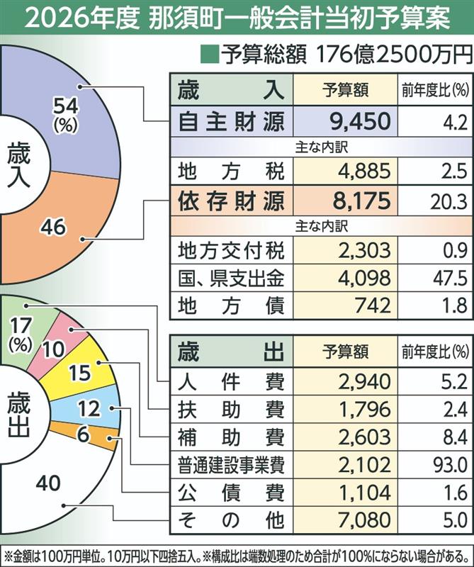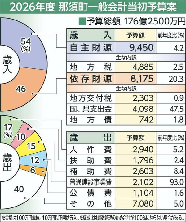 那須町2026年度当初予算案、4年連続増の176億2500万円 教育、防災など「バランス良く」