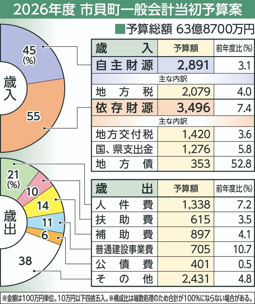 市貝町2026年度当初予算案、過去最大規模に 63億8700万円 軽部町長公約、子育て支援など盛り込む