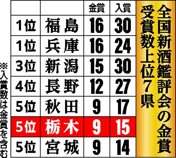 「とちぎの酒造り」底力示す 金賞受賞が9点、全国順位は5位 全国新酒鑑評会