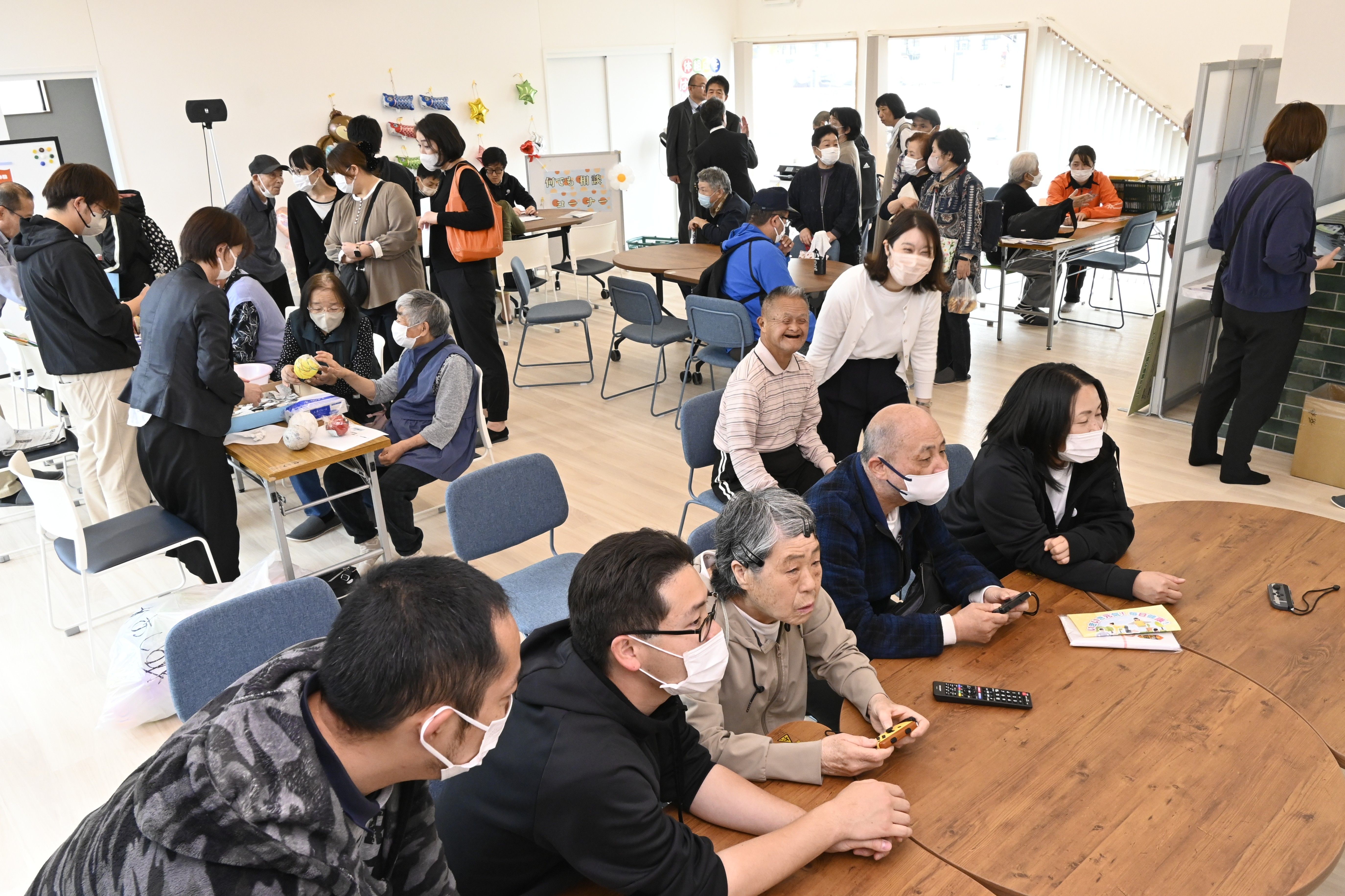 N293テラスの内覧会で交流を楽しむ障害者や地域住民ら