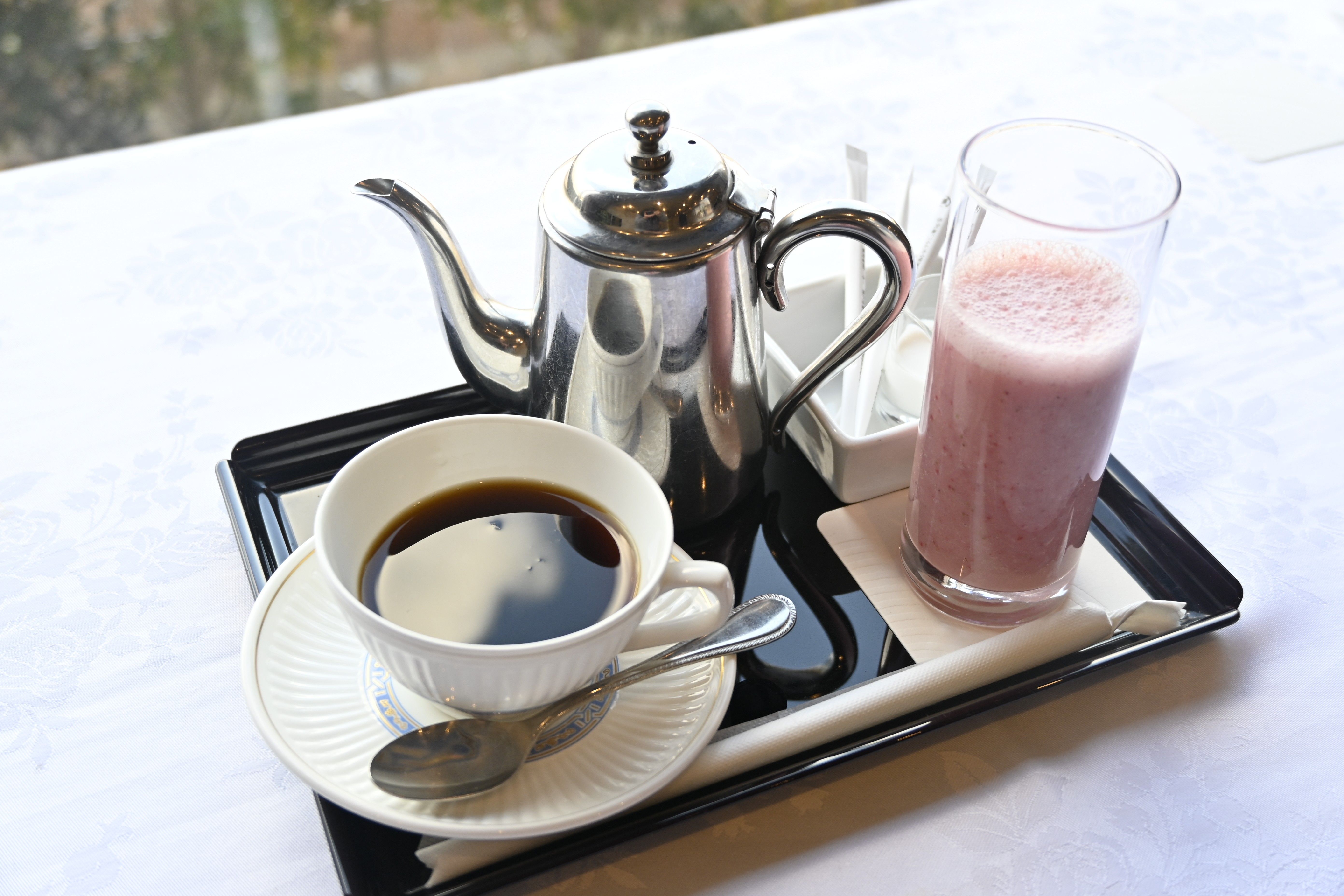 永瀬九段が午後のおやつに注文した「とちあいか」のジュースとホットコーヒー