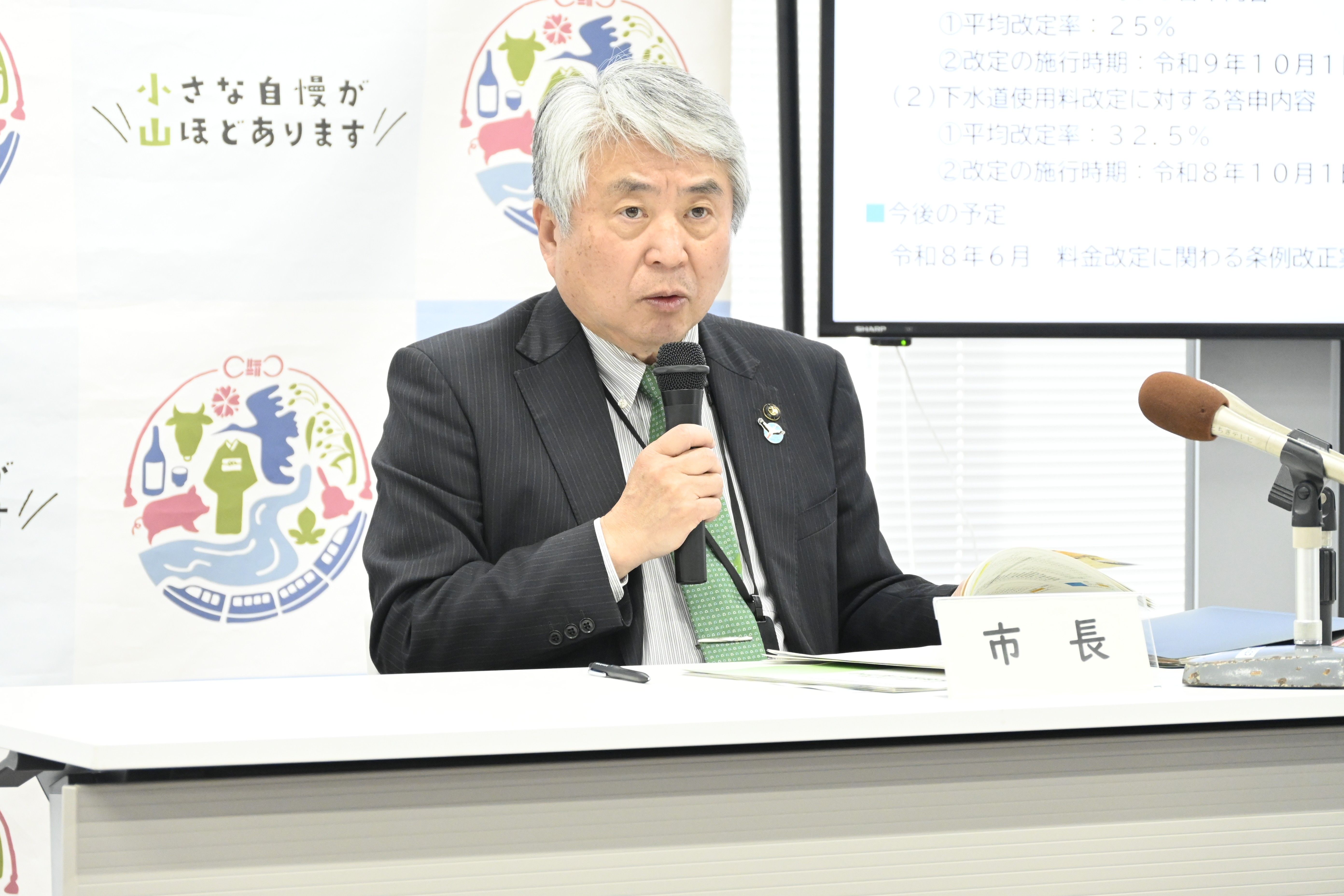 定例会見に臨む浅野市長