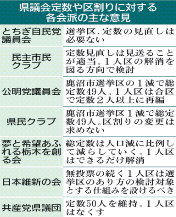 栃木県議会、議員定数巡り各会派が意見表明 「現状維持」と「1減」で意見割れる