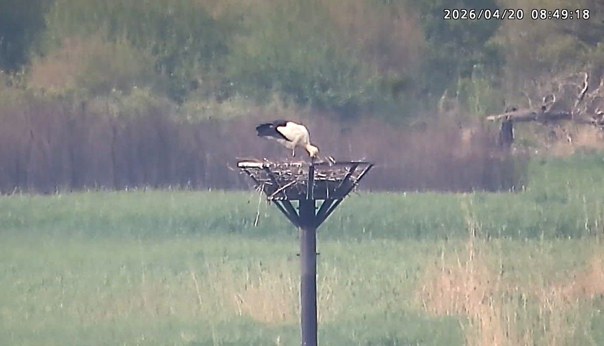 餌を吐き出すひかる(ライブカメラ映像より抜粋)=20日午前8時50分、小山市下生井(同市提供)
