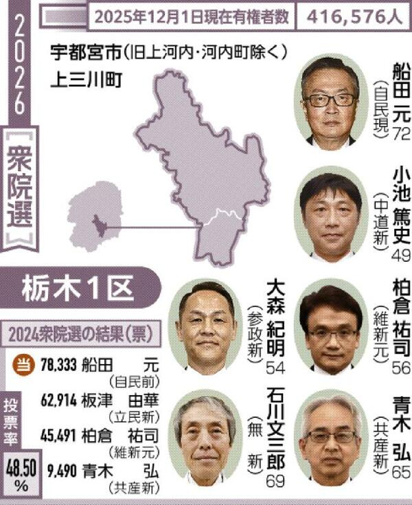 衆院選 栃木県内5選挙区、戦いの構図 1区 自民「厳しい戦い」、地固めに躍起 中道は支持層固めと浮動票 「戦術よりがむしゃらさ」
