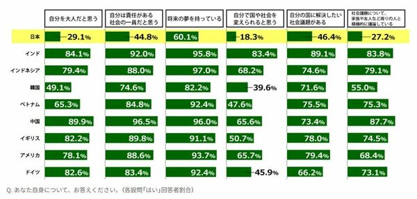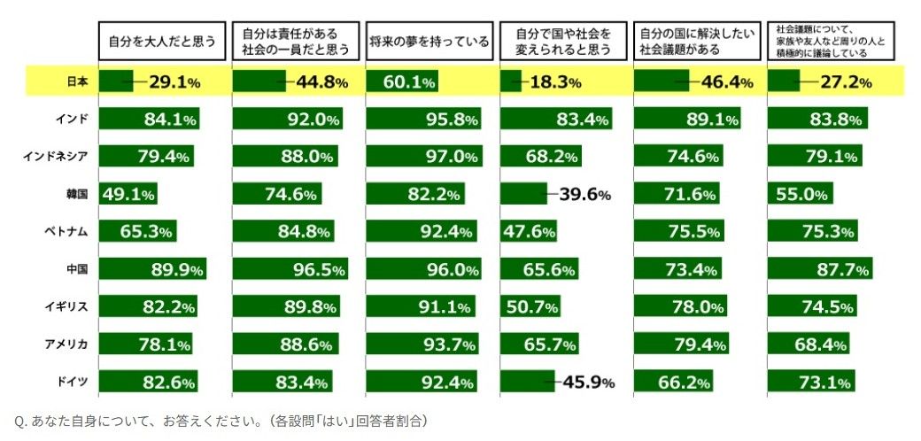 2019年の日本財団「18歳意識調査」より。結果から日本人の「幼さ」がうかがえる