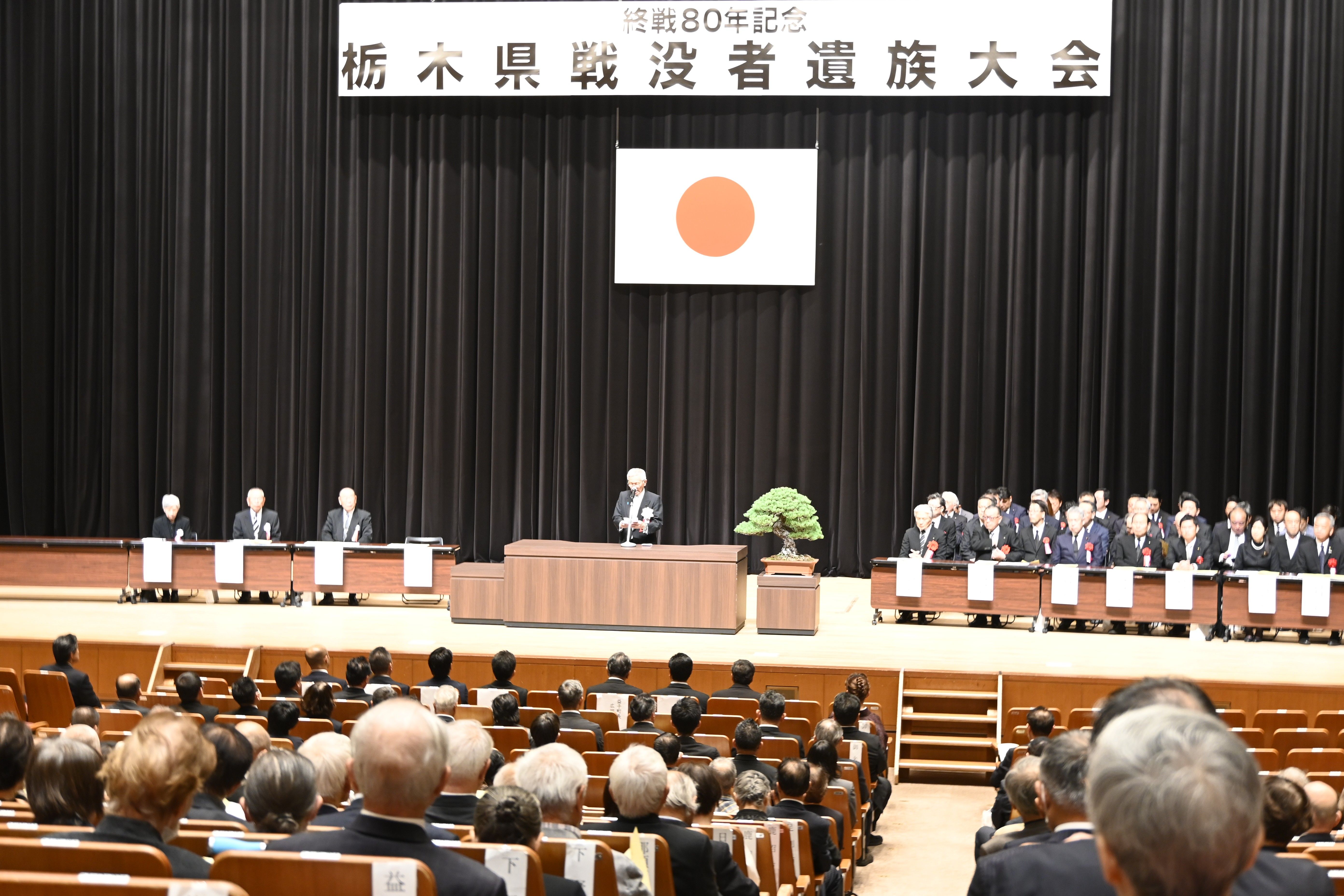 遺族ら約400人が参列した県戦没者遺族大会=18日午後、県総合文化センター